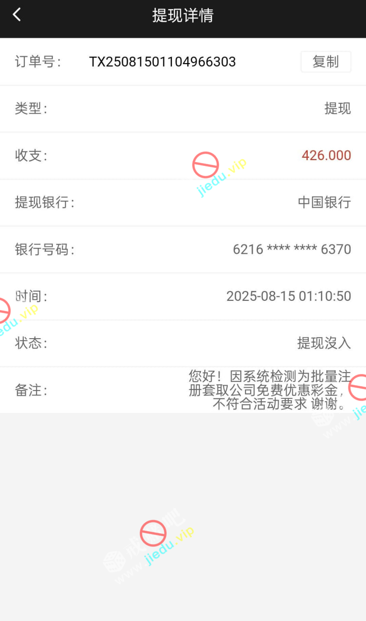 一百多个下级打的佣金拿去玩了一会感觉还行,说我批量注册套彩,提现的时候直接黑了。