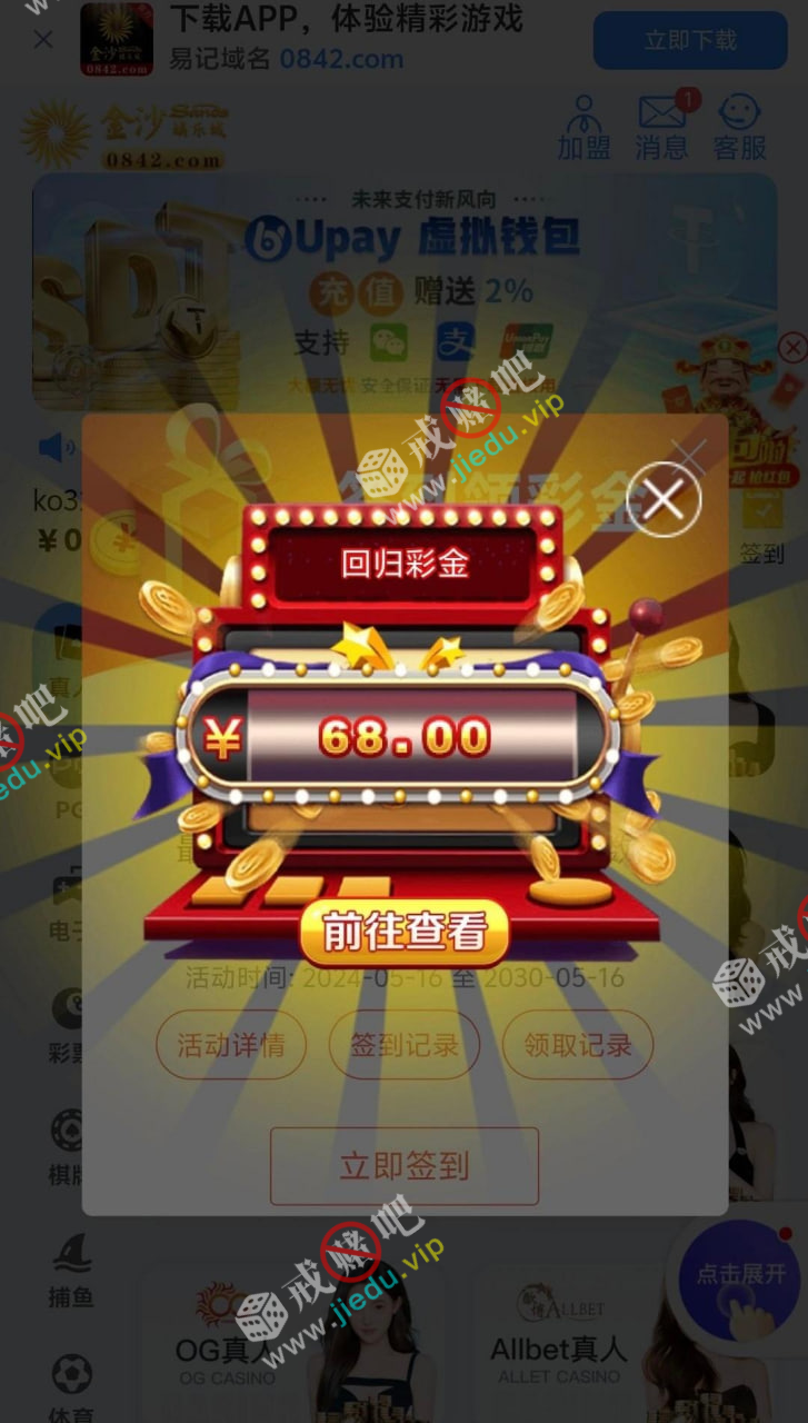 【金沙0842】—✅—回归彩金