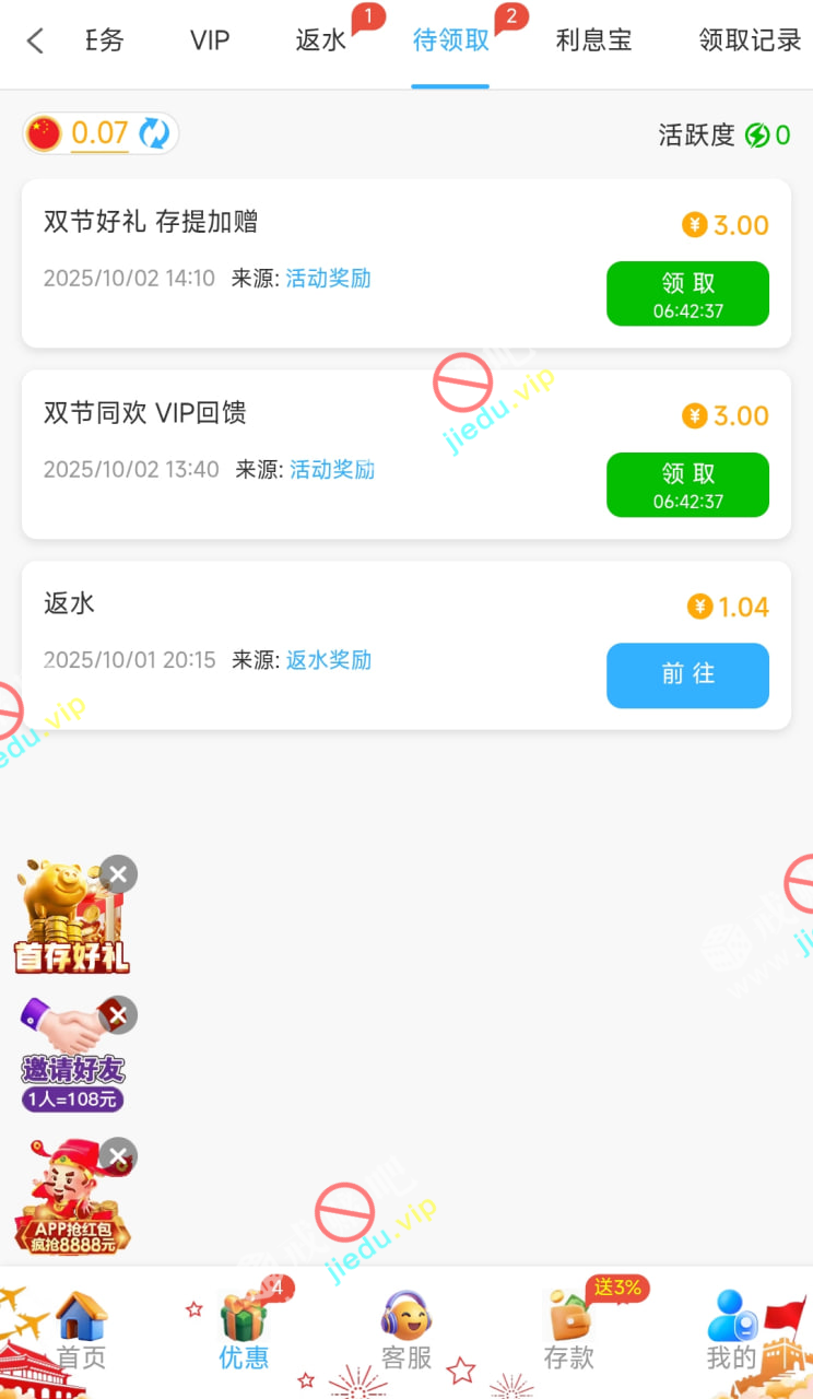 存款过的赌神去,我今天上号才看见待领取里。