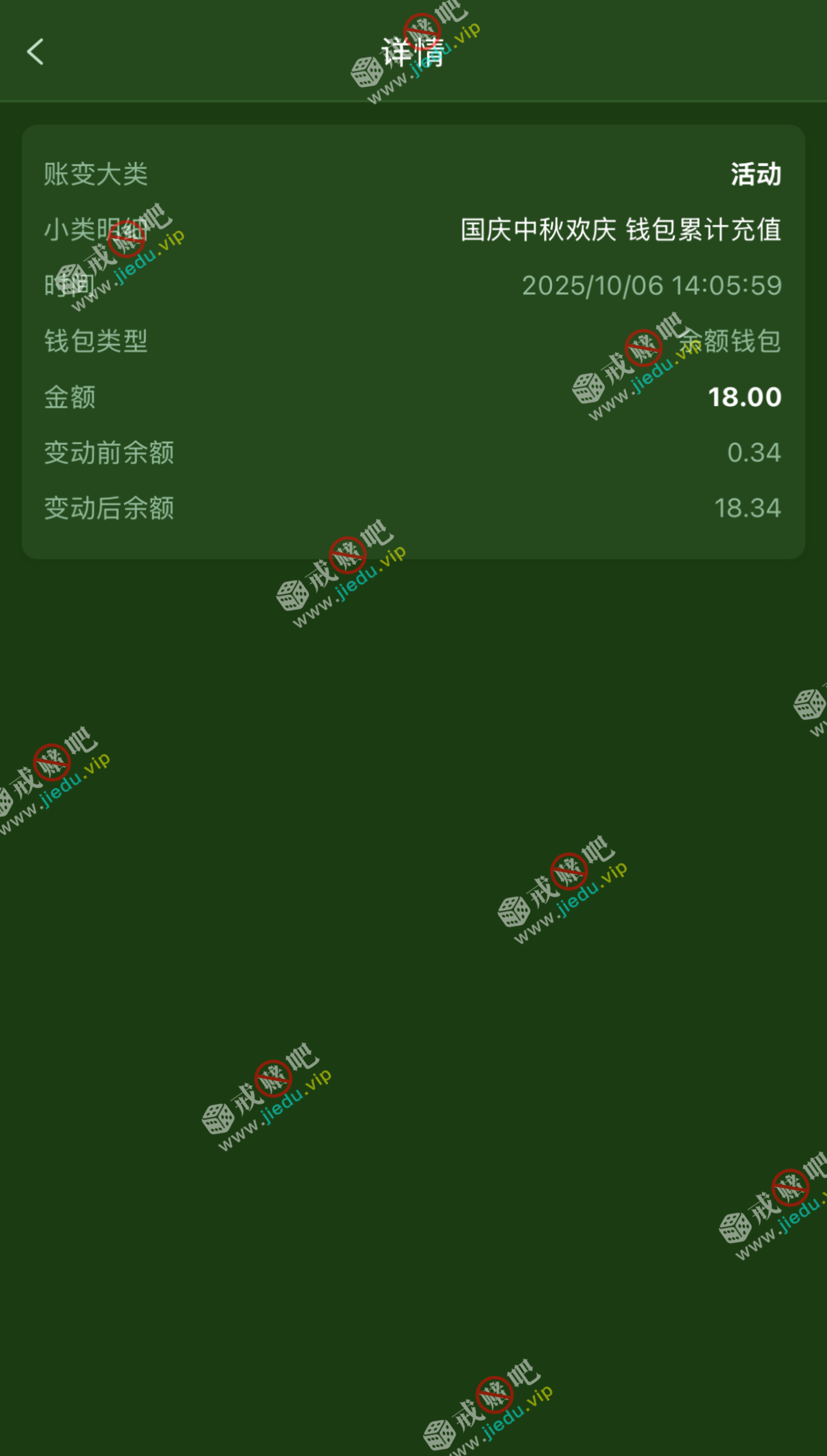 没充过,所以没有