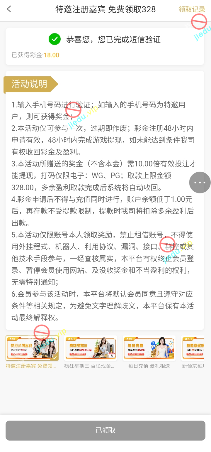 可以去看看我出181,验证手机号领取。