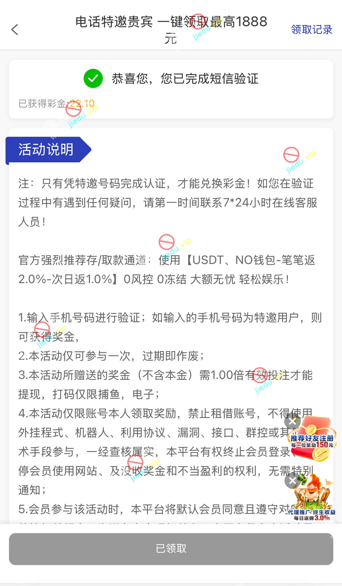 注册下载活动专区自行碰瓷,打够流水就能提。