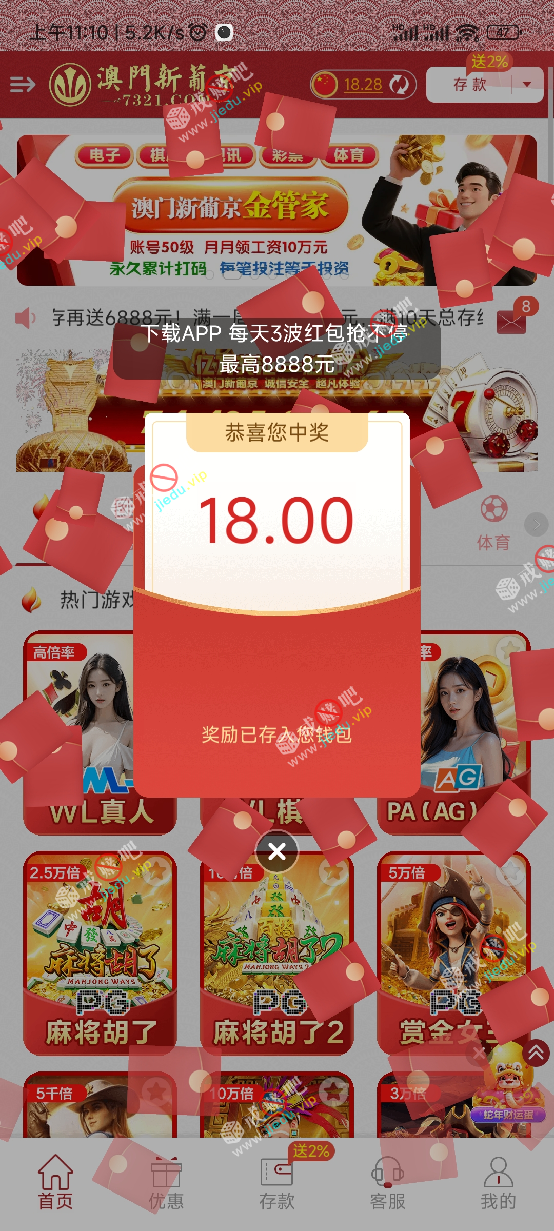 新葡京7321红包真的大 每天三波 要下载app