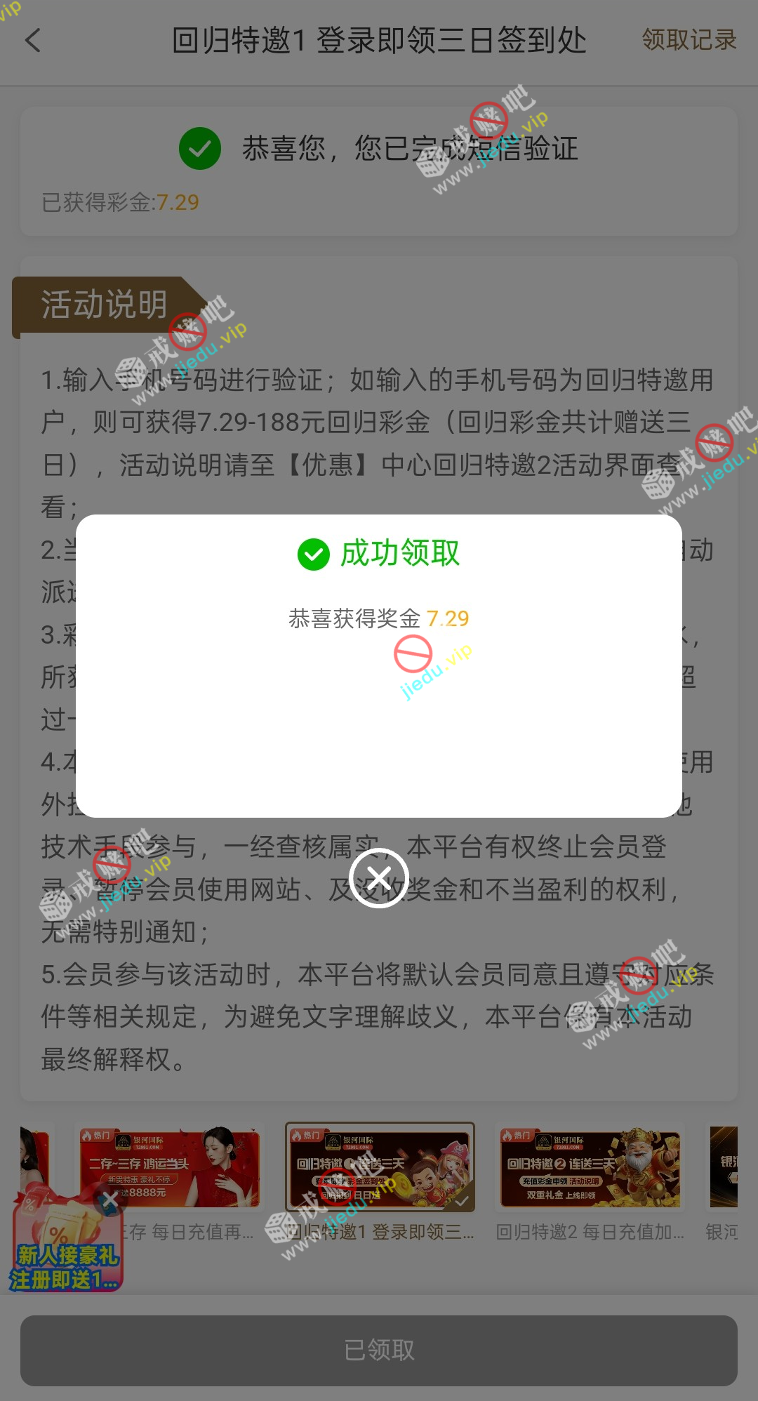 到账情况: 白嫖即可(勿充值)
