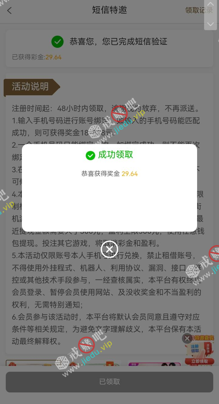 到账情况: 白嫖即可(勿充值)