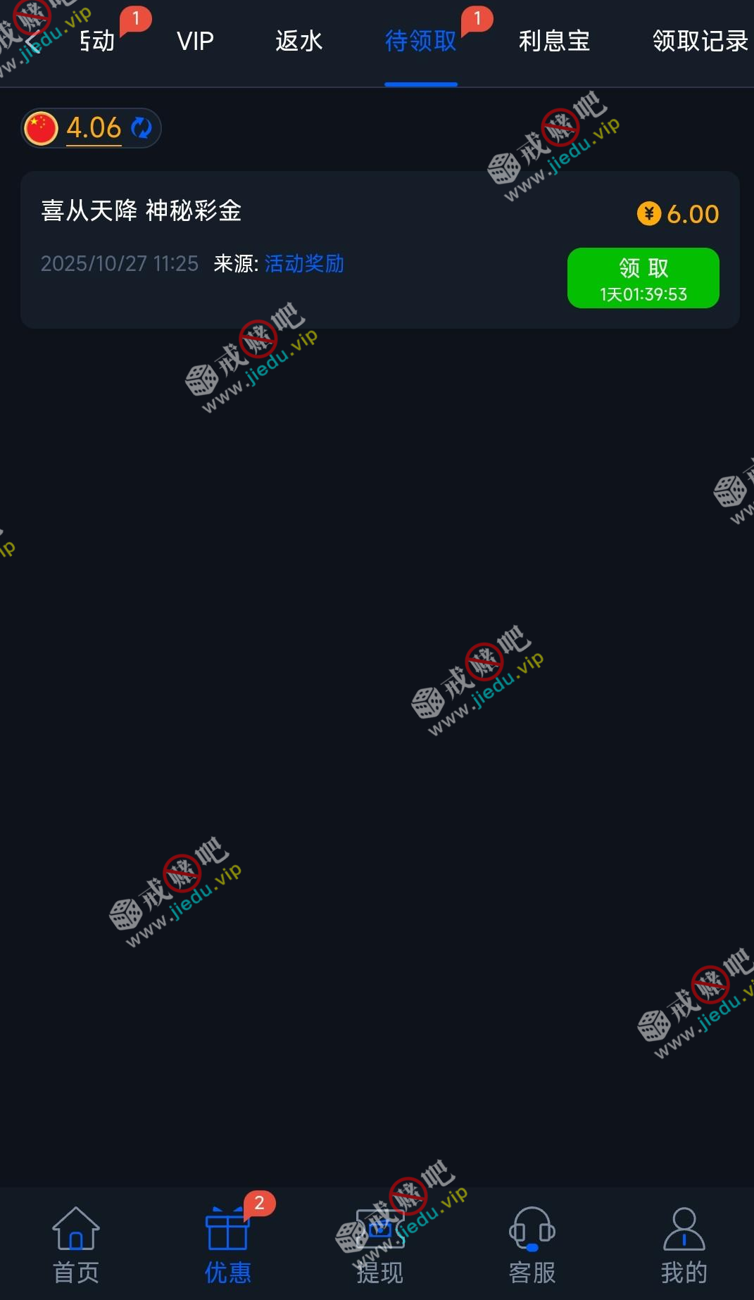 到账情况: 白嫖即可(勿充值)