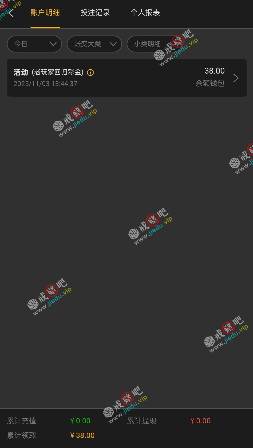 自己去碰碰,我碰到了回归彩金 38.