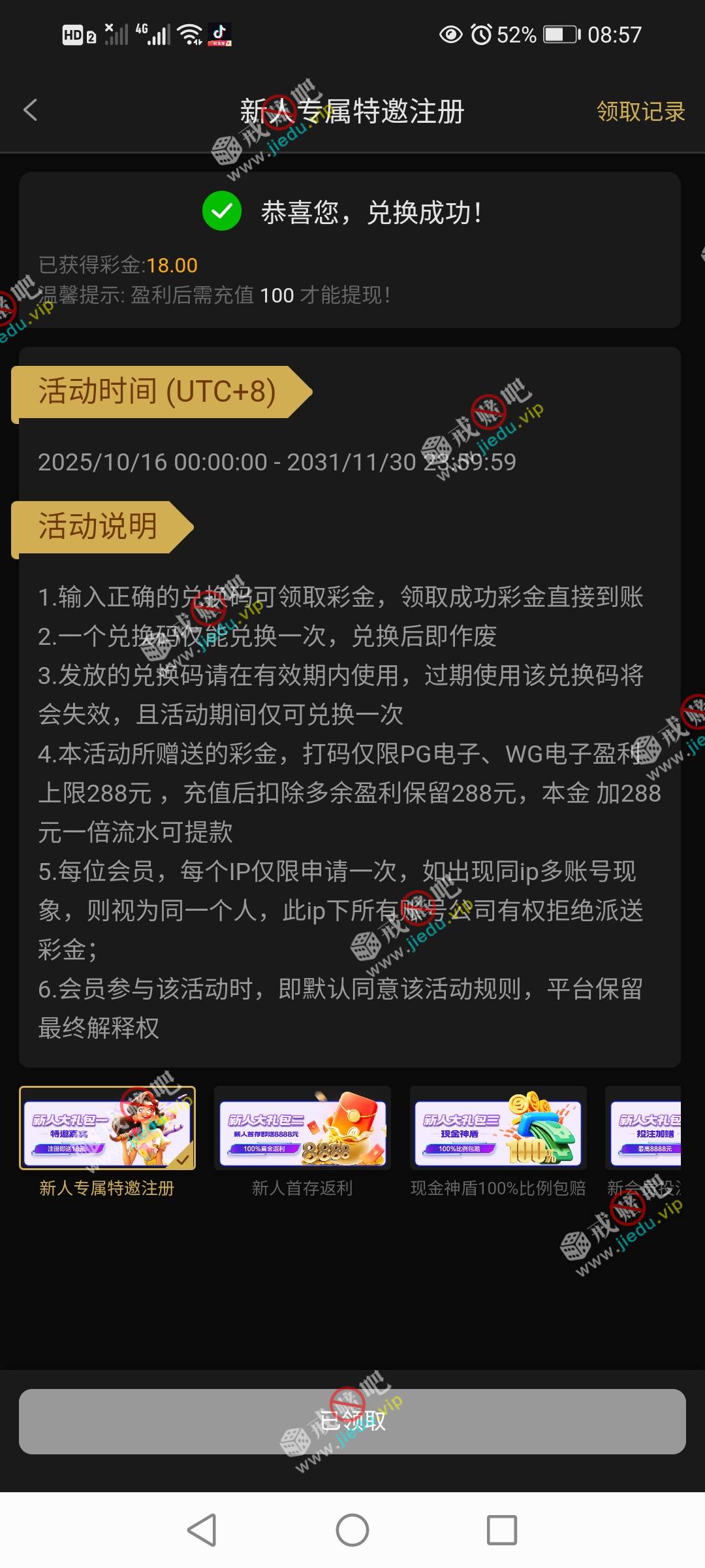 到账情况: 白嫖即可(勿充值)