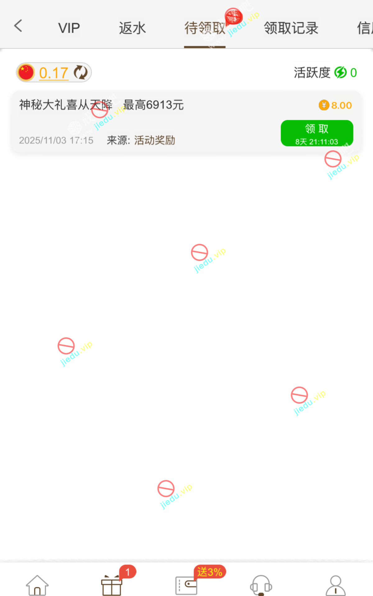 到账情况: 白嫖即可(勿充值)