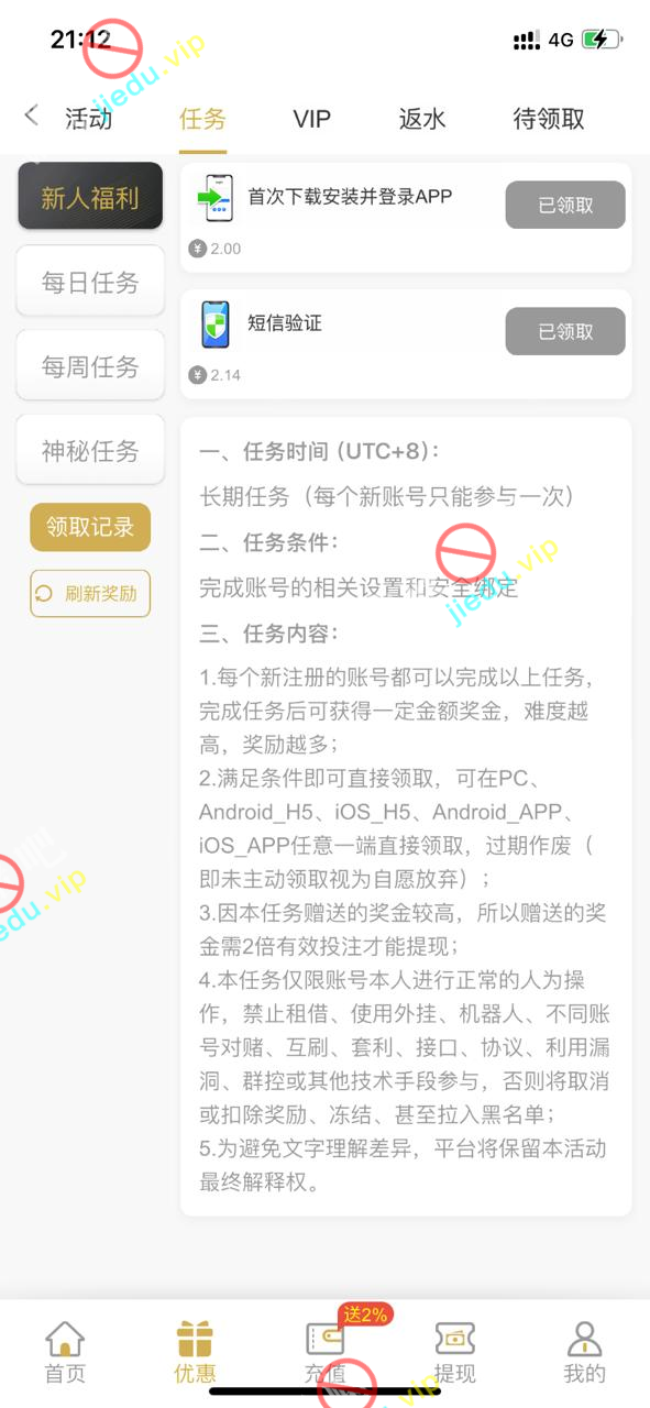 到账情况: 白嫖即可(勿充值)
