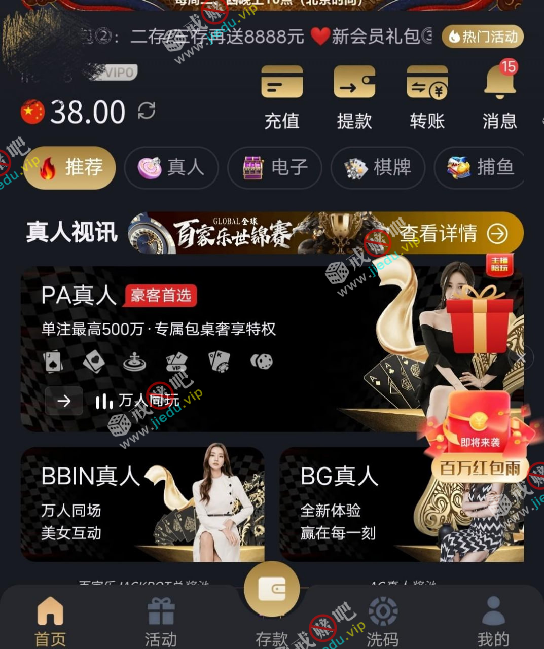 之前是有VIP才送的, 今天去碰瓷不用VIP直接送,找专员领取碰瓷 38 的电话回访彩金即可!