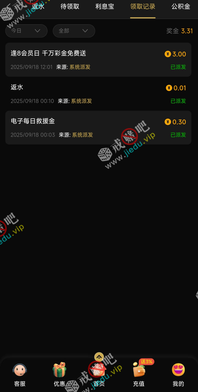有号的去看看,逢8会员日免费彩金。
