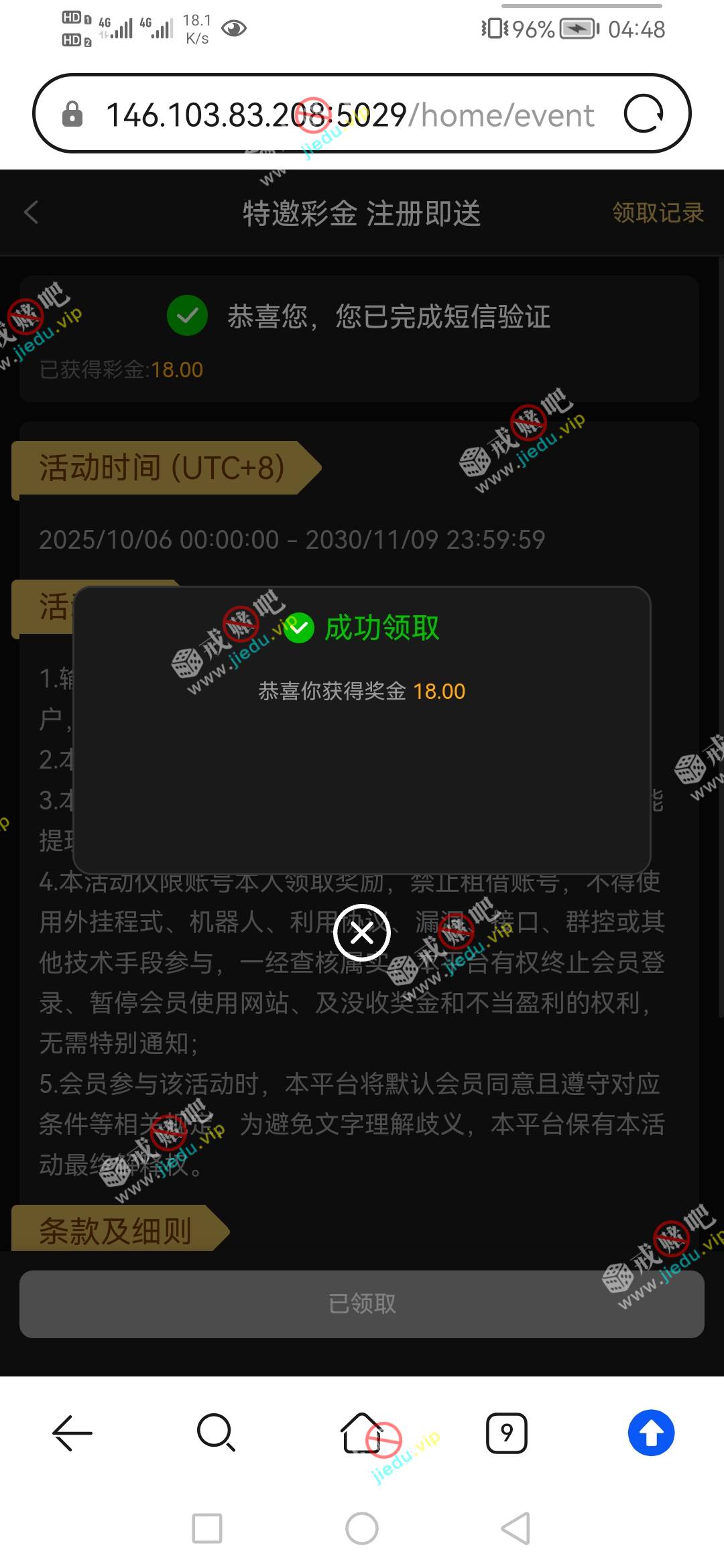 到账情况: 白嫖即可(勿充值)