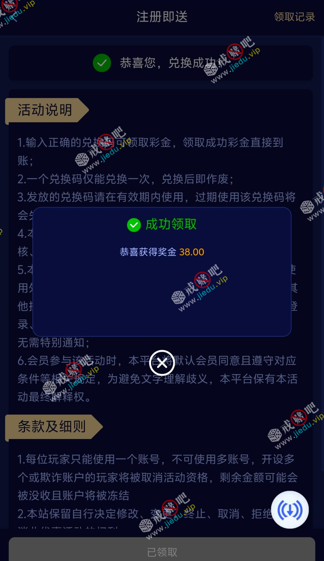 到账情况: 白嫖即可(勿充值)